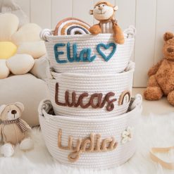 Personalized Baby Woven Colorful Storage Basket,Children’s Toy Storage Basket with Name, Newborn Baby Room Decoration, Kids Room Decoration